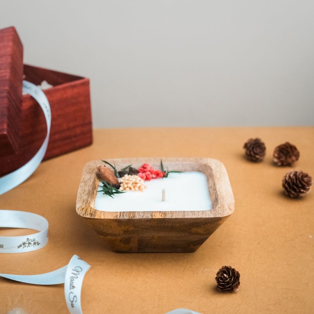 Christmas Wooden Candle | Square | Scented Soy Wax Candle
