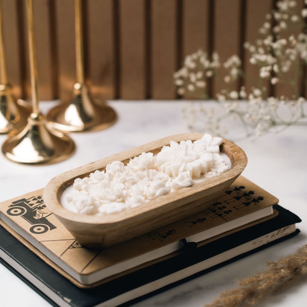 Wooden Boat Candle | 8" | Wax Flower Soy Wax Candle